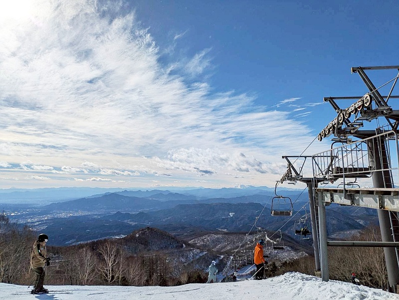 日程は参加者全員の都合という消去法で、大晦日となりました。場所は、当日のコンディションで選びました。当日は雪の予報でしたが、見事に晴れて、疲れ果てるまで滑走を楽しみました。川場は、スキー初めての方にはちょっとつらいスキー場です。初心者同行ならば、この近くならば玉原をお勧めしておきます。遠方の白雪の山は浅間山です。